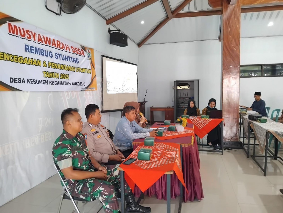 Selasa, 3 Juni telah di laksanakan Musyawarah Desa Rembug Stunting ( Pencegahan dan Penanganan Stunting) Desa Kebumen Tahun Anggaran 2025. Musdes di hadiri oleh Sekcam Kecamatan Sukorejo, Bapak Kepala Desa beserta Perangkat, Ketua BPD, Babinsa dan Bhabinkamtibmas Desa Kebumen, Bidan Desa Kebumen dan unsur Lembaga lainnya dari Desa Kebumen.