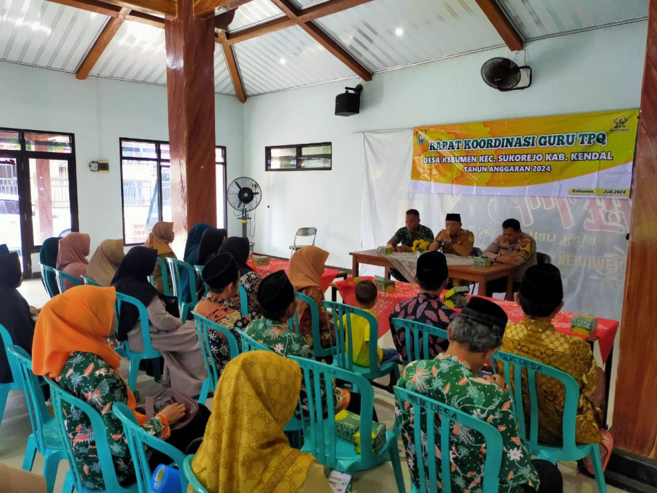 Pemerintah Desa Kebumen melaksanakan rapat koordinasi guru TPQ Se Desa Kebumen pada hari Senin, tanggal 20 Januari 2025.Rapat koordinasi guru TPQ adalah pertemuan rutin para pengajar Taman Pendidikan Al-Qur'an untuk menyelaraskan program pembelajaran, membahas evaluasi, mengenalkan guru baru, mengkoordinasikan agenda bulanan/tahunan, serta membangun kekeluargaan, yang sering kali difasilitasi oleh Kementerian Agama (Kemenag) dan bertujuan meningkatkan kualitas pendidikan agama anak usia dini agar santri terbiasa hidup Islami dan mampu membaca Al-Qur'an dengan benar.